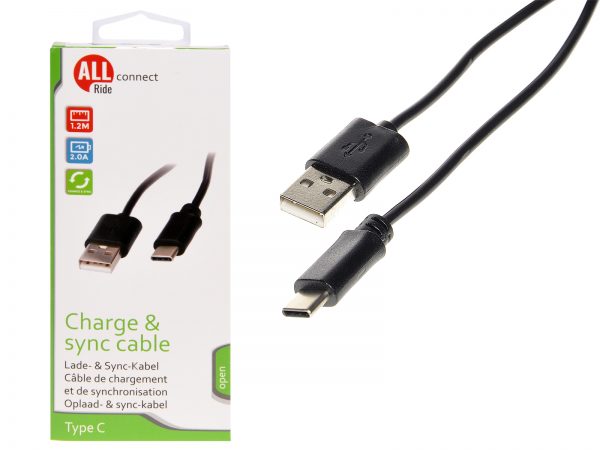 AR connect Lade-Datenkabel 1,2m, schwarz 2.0A USB Typ-C