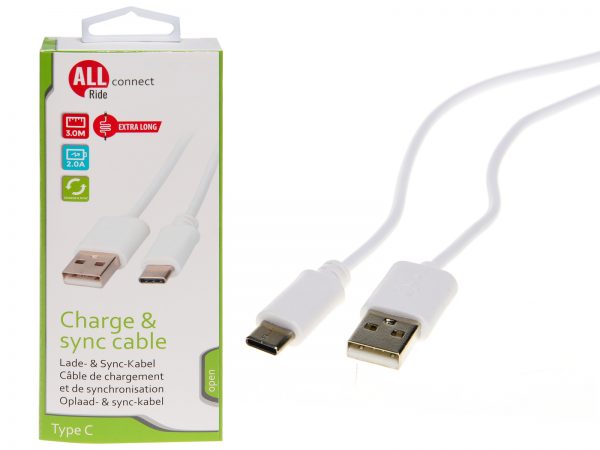 AR connect Lade-Datenkabel 3,0m, weiß 2.0A USB Typ C