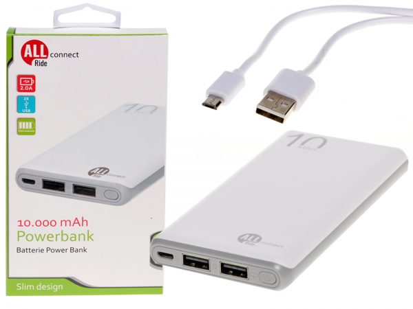 AR connect Powerbank, 2.0A, 10.000 mAh 2x USB, micro USB weiß