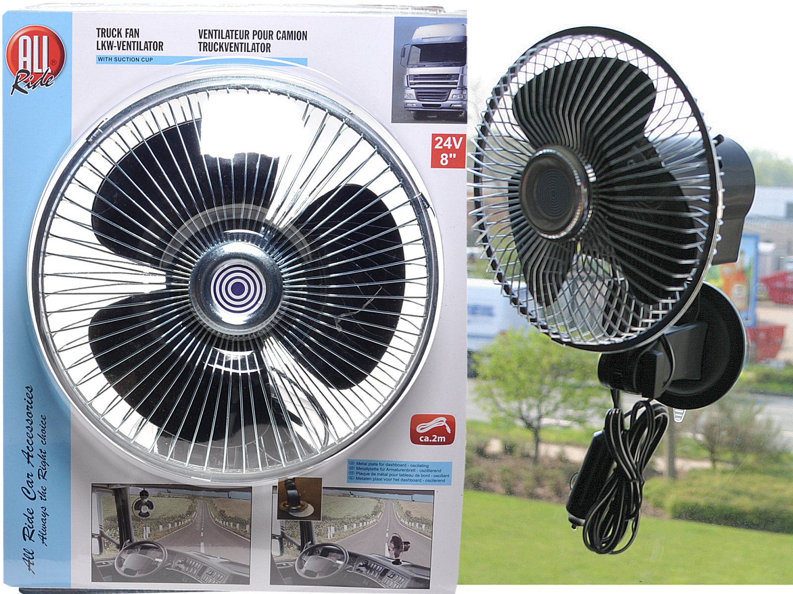 Lüfter CAR FAN, 24 V 8 Zoll, schwarz mit Saugnapf