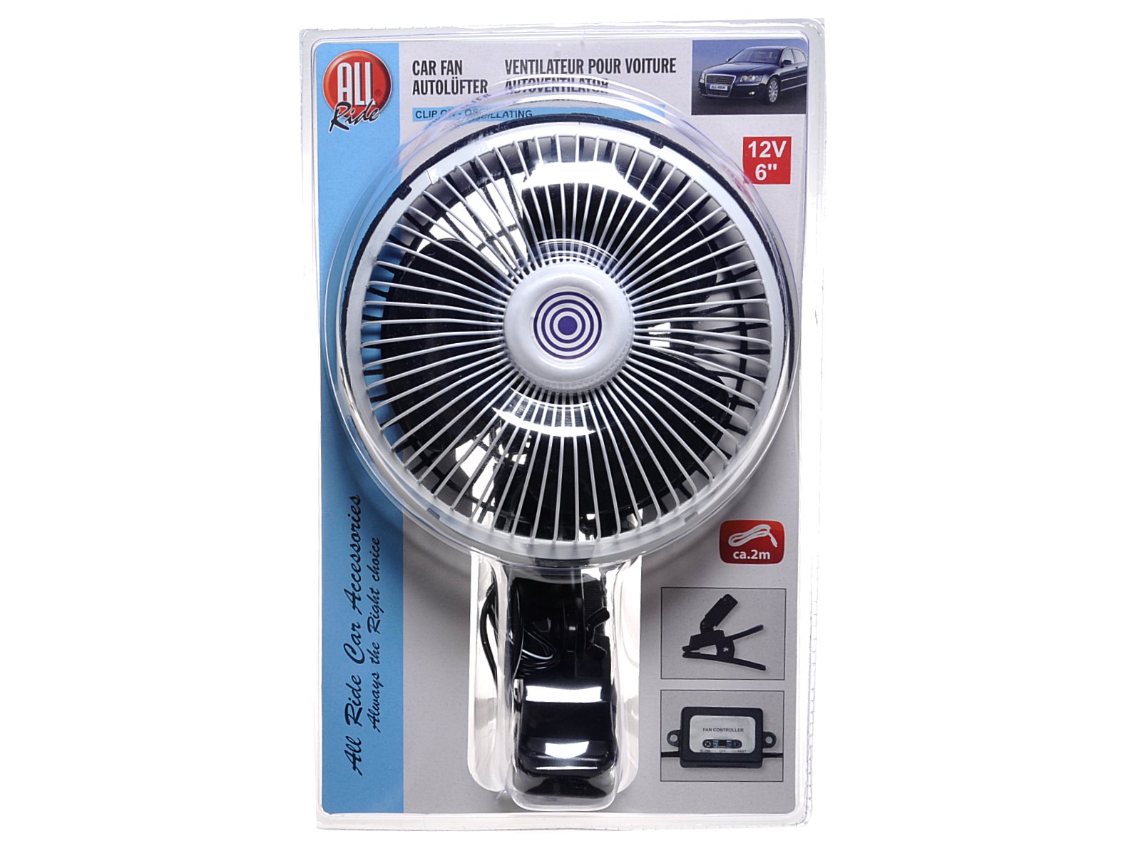 Lüfter CAR FAN, 12 V 6 Zoll, schwarz mit Klemmfuss